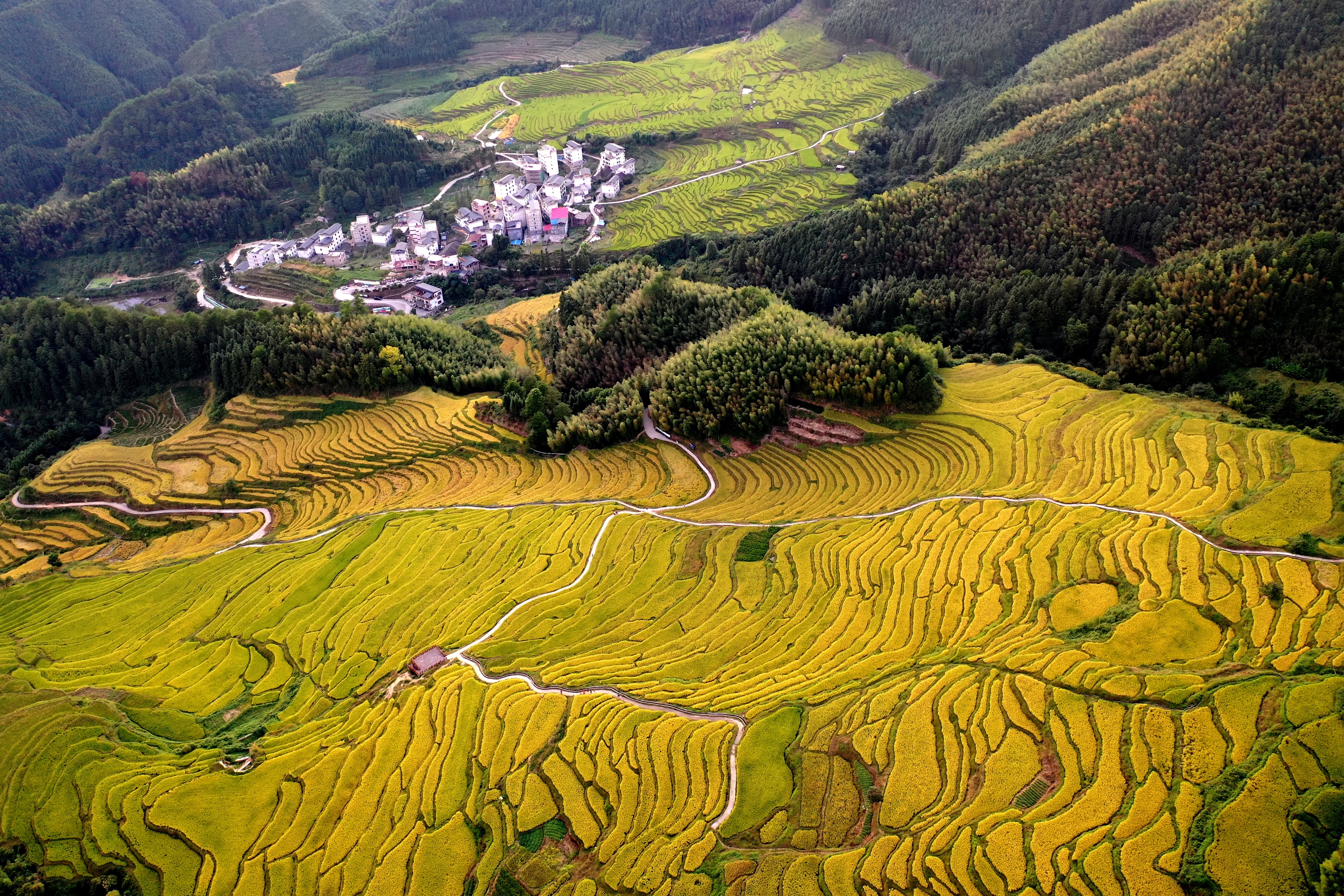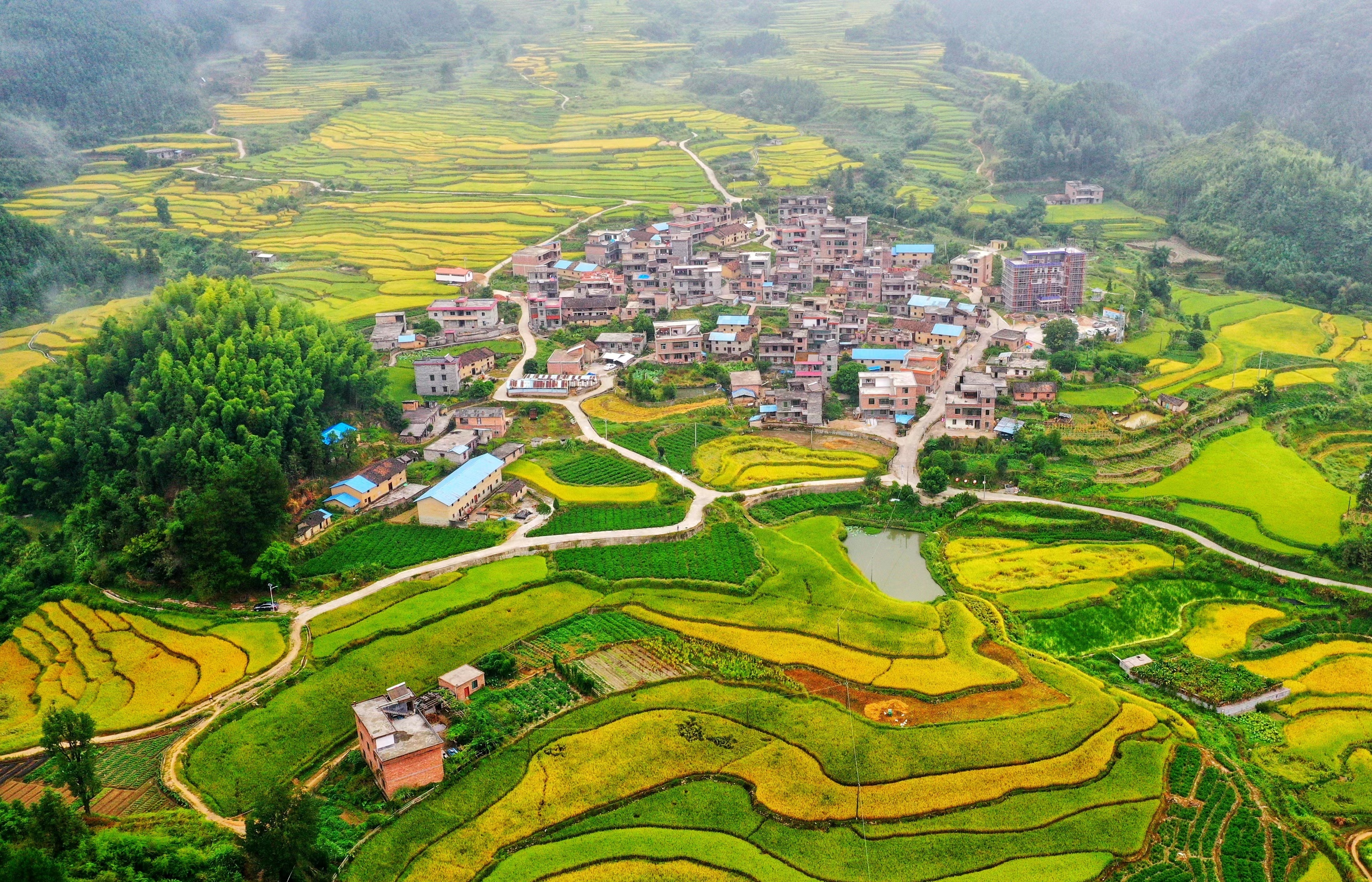 一幅稻田画,一派振兴景。