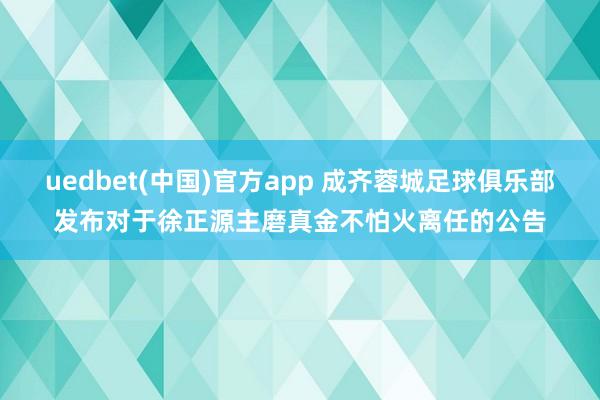 uedbet(中国)官方app 成齐蓉城足球俱乐部发布对于徐正源主磨真金不怕火离任的公告