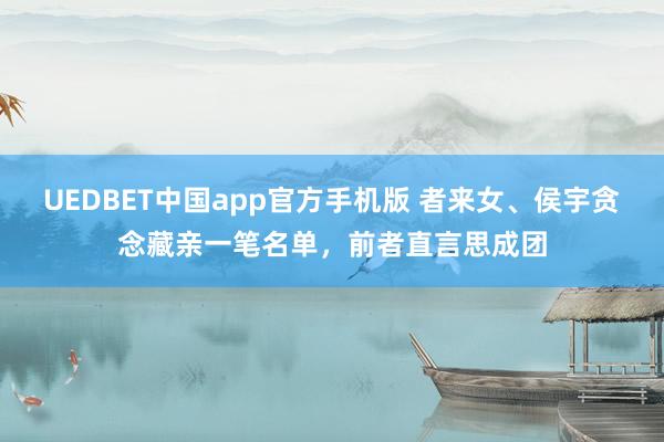 UEDBET中国app官方手机版 者来女、侯宇贪念藏亲一笔名单,前者直言思成团